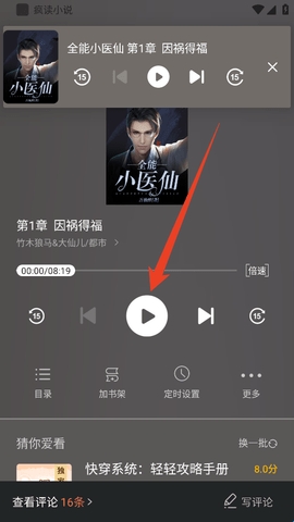 3、找到后点击进入,点击中间的播放按钮就能开始听书了。