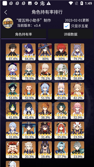 通过角色持有率的排行情况,我们能够了解到哪些角色的获取概率相对更高。