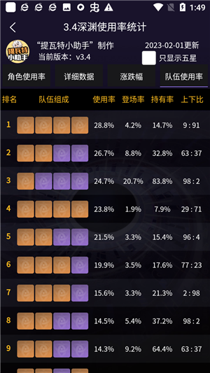 通过深渊使用率的统计,我们就能了解哪个角色更适合挑战深渊。