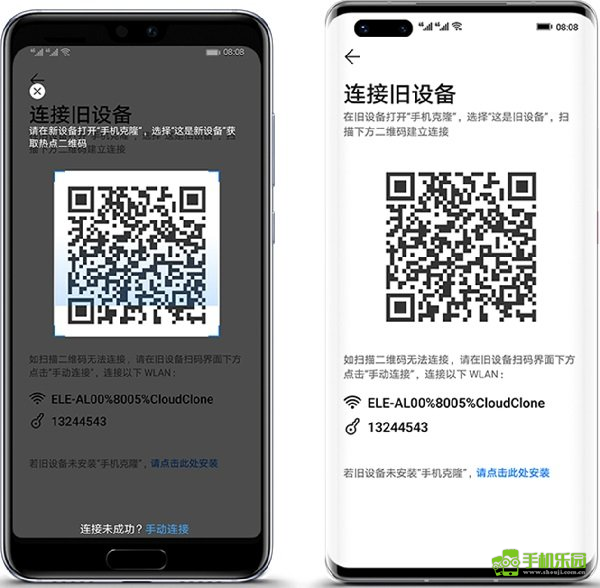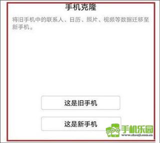 用旧手机扫描新手机上出现的二维码,连接新旧手机。