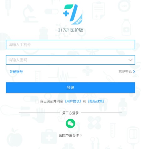 3、在317护的登录界面中,输入手机号与密码即可登录该应用。