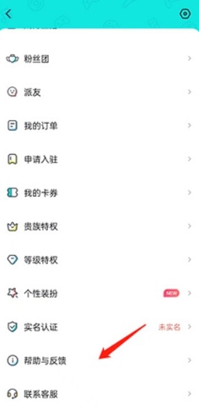 2、在个人中心页面,找到并点击“帮助与反馈”。
