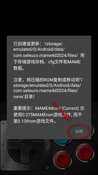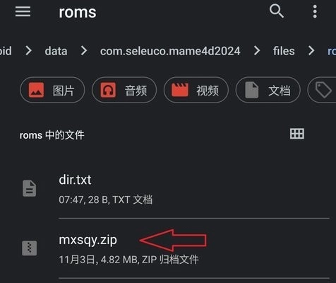 rom完成后,复制到上述模拟器创建的“默认文件夹”中:手机/Android/data/com.seleuco.mame4d2024/files/roms。
