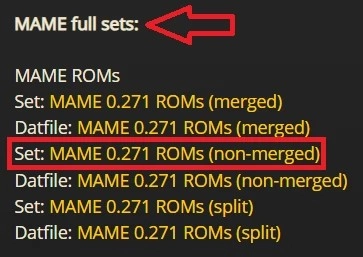 然后找到游戏的room文件,点击其中的“Set:MAME x.xxx ROMs(non-merged)”选项。