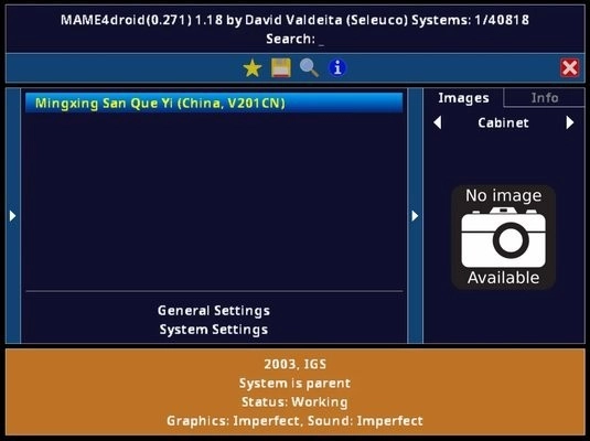 最后,彻底退出MAME4droid应用,接着重新打开它,就能在游戏列表里找到刚才导入的游戏了,就像图中展示的那样。