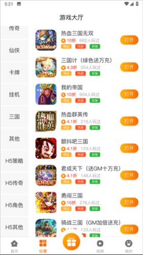 4、进入页面后,选择一款想玩的游戏,点击打开,即可开始加载;