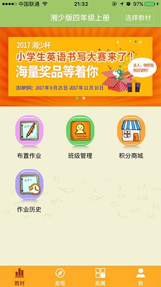 每日一句、英汉互译、英语故事、绘本动画等栏目为学生们提供更多学习资源。