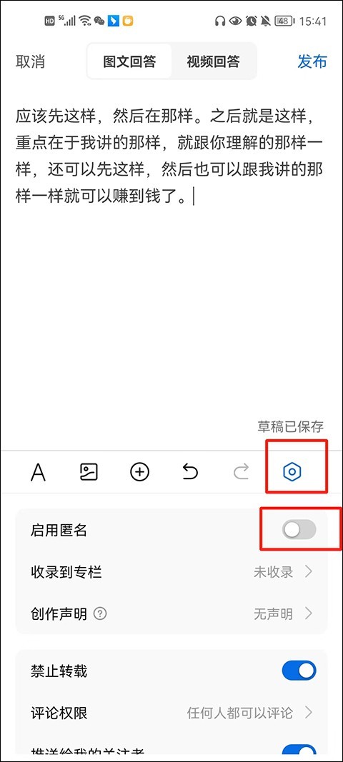 2、点击下方的设置图标,再点击界面底部的匿名身份选项。