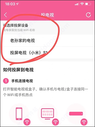 再回到里面点一下投屏刷新就会出现了,原因是像爱奇艺、优酷、腾讯视频这类能直接投屏的软件都是默认开启本地网络的,而这个软件没有默认开启该权限,得手动开启才行。