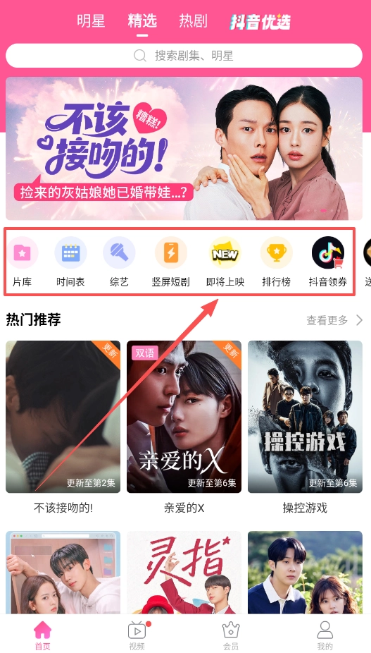 若想查找特定内容,可利用顶部的搜索框,直接输入剧名或明星名称;也能通过“片库”“精选”等分类标签来浏览筛选。