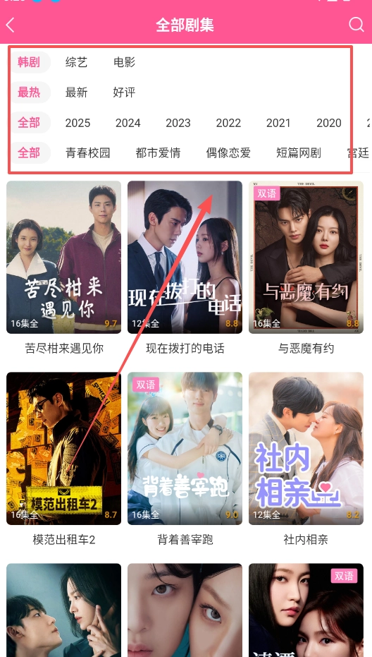 在“全部剧集”页面,你可以先借助“韩剧”“电影”这类类型标签完成初步筛选,之后再通过“最热”“最新”或者年份选项来开展精细筛选。