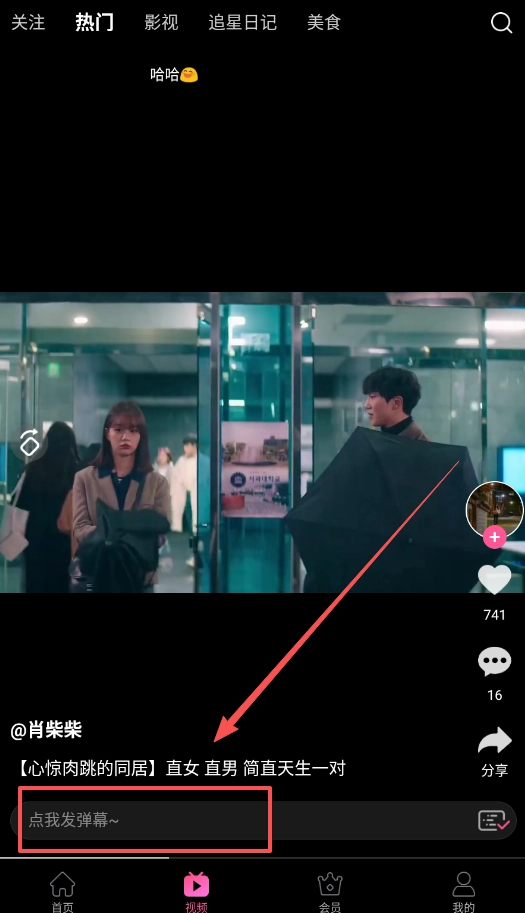 观看视频的过程中,你可以点击“点我发弹幕”按钮,输入你当下的想法然后发送,这样就能和其他观众进行互动交流,让追剧这件事不再那么孤单。