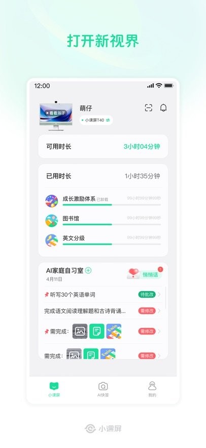 小课屏App是专门为家长设计的智能学习管理工具,能帮您轻松掌握孩子对学习机的使用情况。借助这款App,您可以远程设定学习机整机的使用时长,管理单个App的使用时间,还能设置管控密码,避免孩子随意修改设置。另外,它还具备一键布置作业的功能,能实时追踪学习进度,让孩子的学习效率更高。