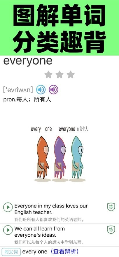 烤鱿鱼初中英语教材配套单词趣味背诵软件。本应用同步初中英语全国各套教材,通过图解趣学、手语视频,单词带读,游戏过关,趣味听写,交互练习等多维度记忆方式,帮助广大中学生轻松快乐高效背单词!