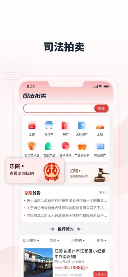 司法拍卖:对司法机关指定处置的资产进行在线公开拍卖。