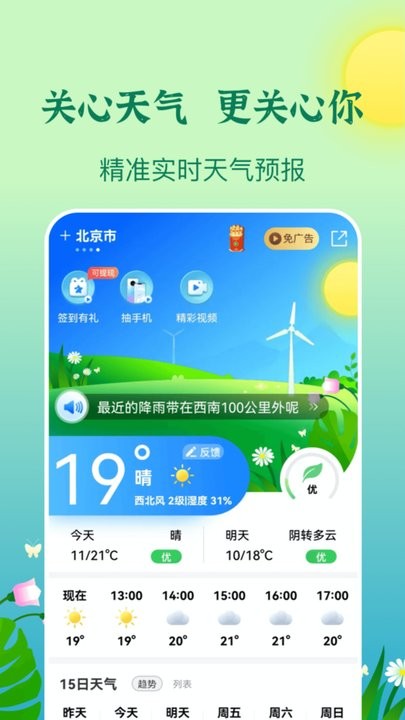 是关心你出行的天气预测系统,能够实时更新天气状况,确保用户第一时间获得最新天气信息。采用先进数据模型,为用户提供高精确度的本地天气预报信息。