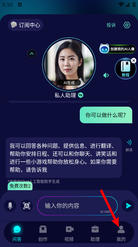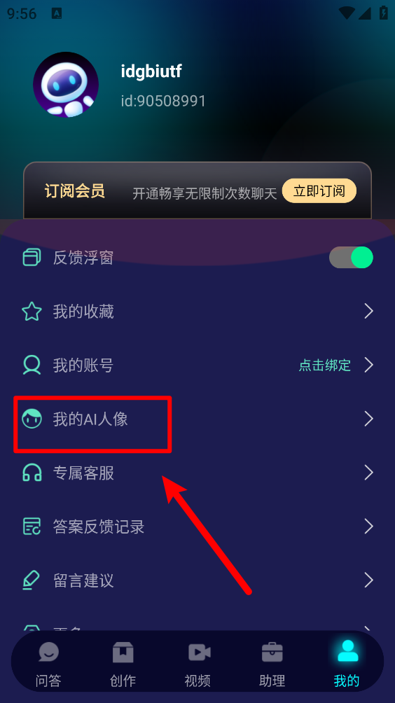 3、然后在我的页面点击"我的ai人像"一键打开。
