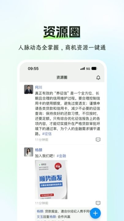 这是一款能提供资源的智能工具,你可以在动态下方发表个人评论,借助动态评论与各大人脉进行实时互动交流。还能随时在资源圈里发布各类资源动态,把各种资源动态进行图文编辑后分享出去。