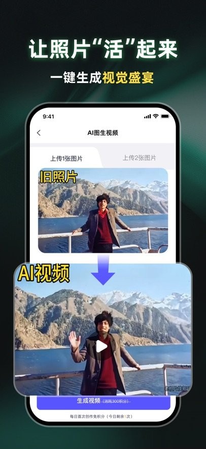 输入文字描述的内容就可以一键生成视频,让你可以图生视频的创作,一键成片。