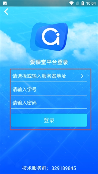在【爱课堂平台登录】页面进行操作时,首先要选择或输入【服务器地址】,接着填写【学号】与【密码】,最后点击【登录】按钮,即可完成登录流程。