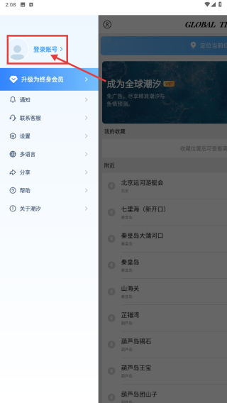 1、启动全球潮汐应用,点击界面左上角的设置图标,打开功能菜单。