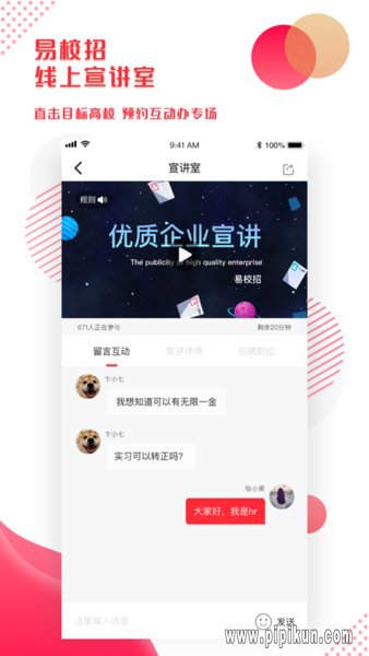可以帮助企业随时接收简历,支持通过视频面试进行一对一沟通,公司的详细信息都能在网上查询到,助力学生了解岗位详情。