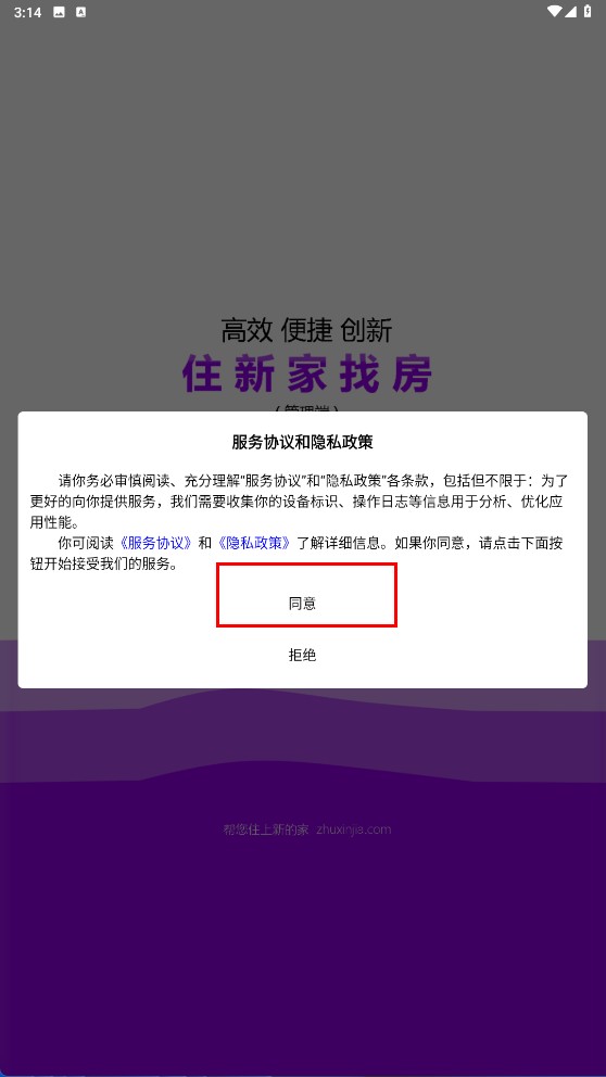 在服务协议与隐私政策页面,点击【同意】功能按钮后,即可进入登录界面。