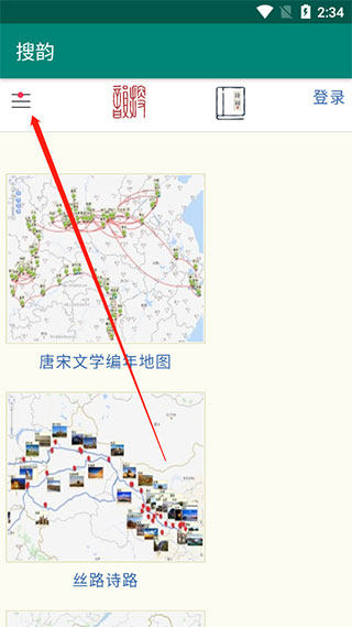 1、在本站安装搜韵诗词门户网站手机版,运行软件,进入主界面;