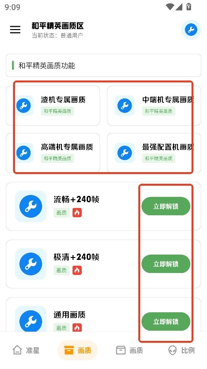 在下方的画质功能列表里挑选对应的画质选项,比如【渣机专用画质】,然后点击免费激活按钮。