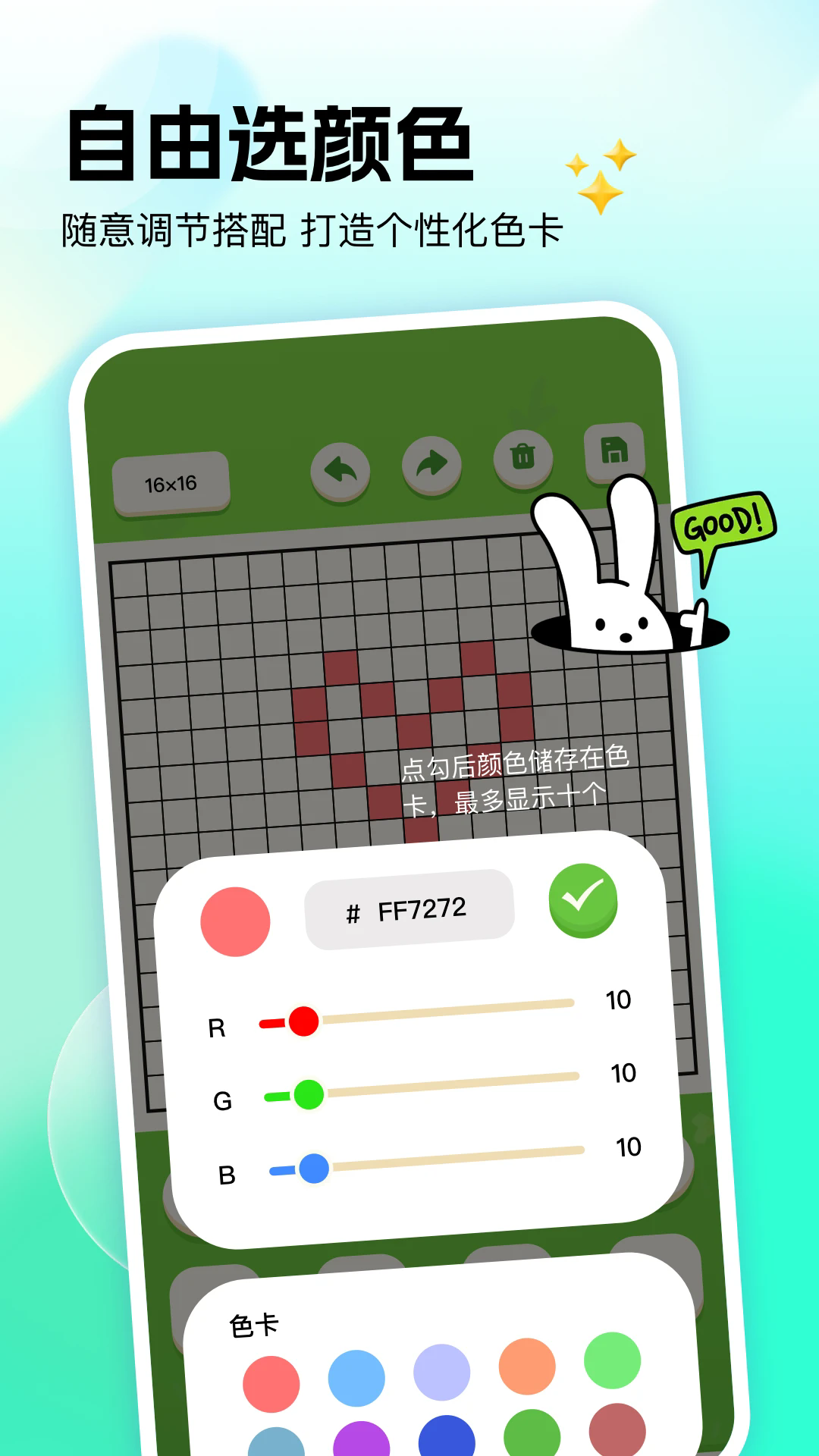 1.你能够自主选择不同的颜色,各类色彩都可自由调整,还能从色卡中随意挑选