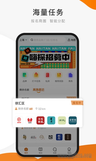 是提供海量任务的食品安全监管,在这里人人都是可以来监督餐饮行业的,通过了解任务来帮助你更好的完成,覆盖餐饮、酒店、零售、汽修、文娱、美妆等行业。