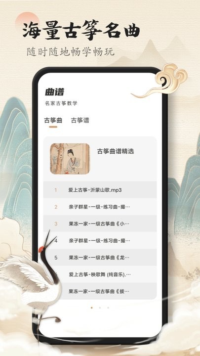1、丰富的曲库内容,多种演奏模式,高品质伴奏与节拍提示,为习筝者带来更丰富的视觉和听觉体验。