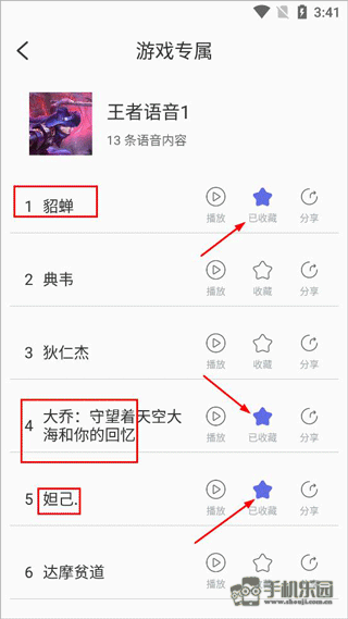 2、打开之后,可以试听各个角色的语音包,选择喜欢的收藏;