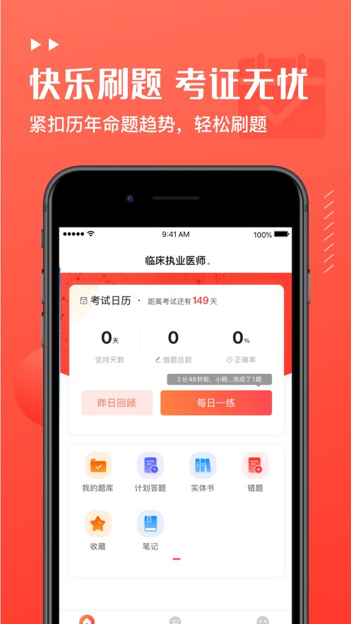 这是一款职业资格考试的刷题神器,用户可以直接查看自己的题库内容,从而能更快速地开启题目练习;它还具备昨日回顾功能,能帮助用户复盘昨天的练习情况,了解当天做题的正确率。