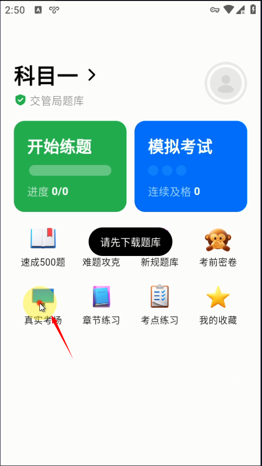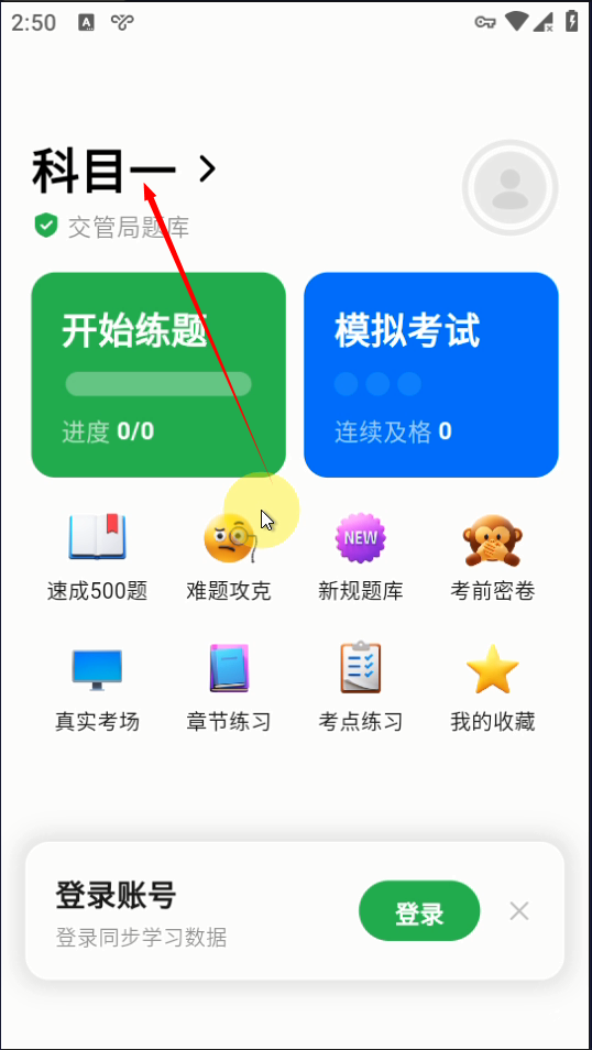 1.在这里自由进行学习,不断进行刷题,来学习更多驾考的知识