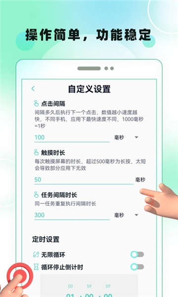 你可以任意设置点击位置,点击频率等操作,适合障碍人士使用。