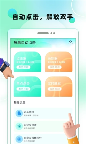 可以替代双手,辅助你在手机屏幕桌面点击,可以1秒内实现多次点击。