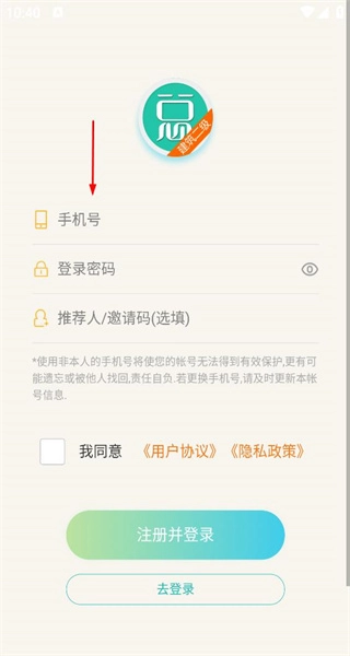 在注册页面填写手机号码与登录密码,勾选对应的协议后,点击“注册并登录”按钮,即可完成账户创建。