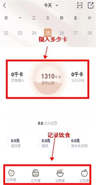 3、软件内在饮食记录自己的饮食,软件会帮助用户检测还能吃多少千卡。