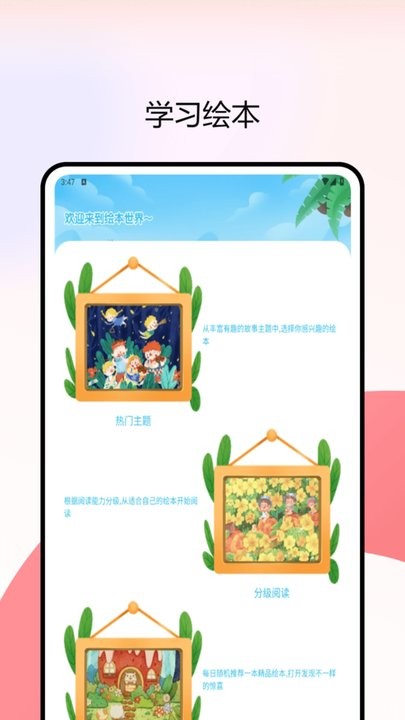 绘本盘堪称儿童学习的得力助手,这款软件里汇聚了极为丰富的学习资源,能在孩子的听、说、测、写等多个方面提供助力,助力孩子更优地学习与成长。它始终以阅读为根基,专注于培育3-12岁孩子的核心素养和关键能力。