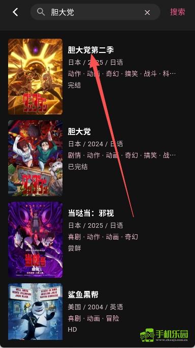3. 在搜索结果中点击我们想投屏播放的动漫资源。