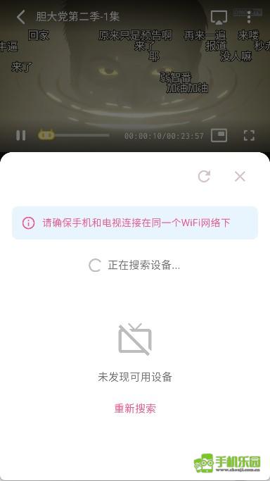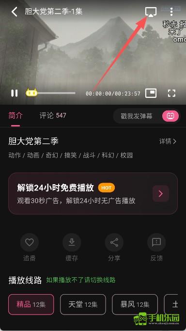 6. 点击我们的电视设备后,动漫资源就会在电视上开始播放。