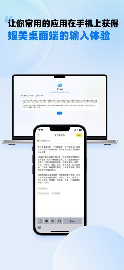 3. 桌面级输入体验:让你常用的应用在手机或iPad上拥有可与桌面端相媲美的输入感受,如此一来,你输入文字时能更轻松、精准,不必再受屏幕大小的约束。
