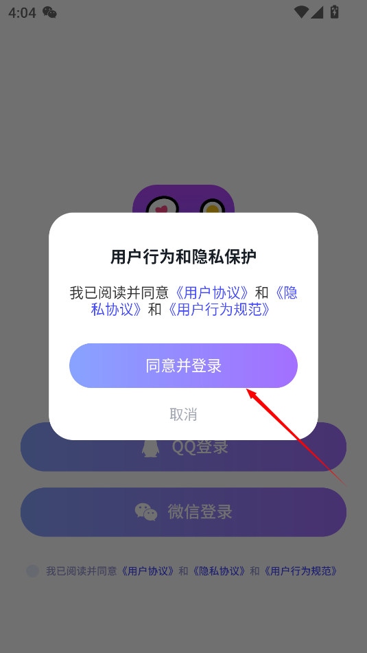 4、需要你同意相关的使用权限才能进行登录,点击同意