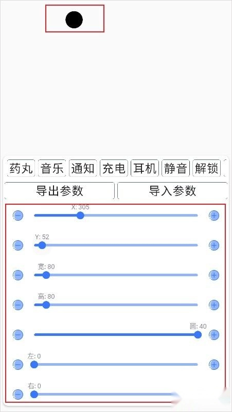 2、然后再调节圆点的位置,使圆点与手机挖孔重合。