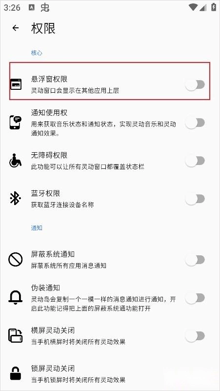 3、赋予"悬浮窗"权限。