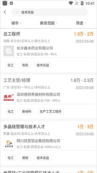 化工英才网是一款专为化工从业者打造的人才招聘平台软件,平台上汇聚了丰富多样的化工相关岗位,助力用户精准匹配到优质工作机会,大幅提升求职体验。无论用户从事化工领域的何种岗位,都能在这里找到心仪的工作。此外,平台对所有岗位信息进行严格审核,确保其安全性与真实性,致力于为用户带来卓越的求职服务。有求职需求的用户,欢迎前往本站使用体验。