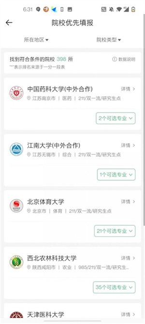 5、软件会依据我们的分数自动筛选出适合我们的学校。