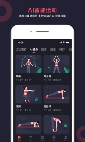 智能AI运动系统,无需借助任何外部设备,零使用门槛,操作便捷易懂,全程配备智能语音引导,能够自动精准地完成计数与计时功能。该系统涵盖跳绳、开合跳、仰卧起坐、深蹲、俯卧撑、平板支撑等丰富多样的锻炼项目,可实时追踪捕捉用户的关节运动轨迹,及时纠正不规范的运动姿势,从而有效保障运动过程中的安全性。