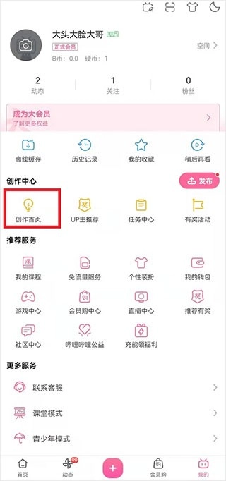 2、在个人主页里点击创作中心的【创作首页】,即可进入该功能页面。